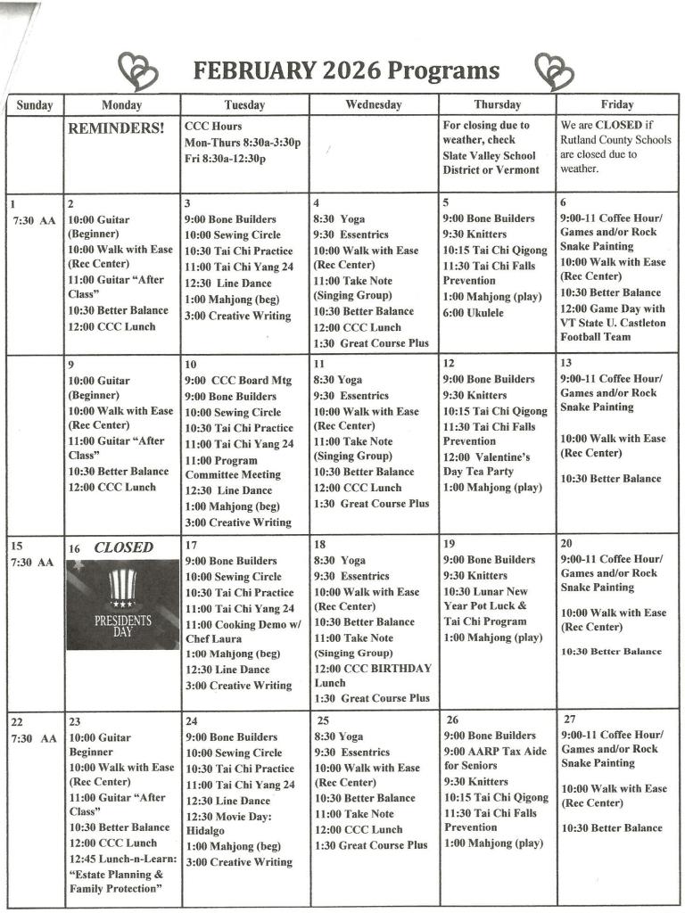 Program Calendar: February 2026